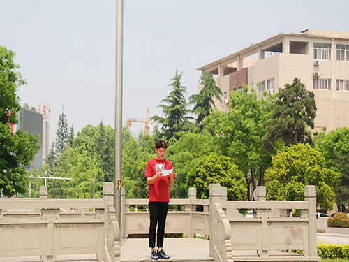 同学们在国旗下齐唱了中华人民共和国国歌《义勇军进行曲》。在慷慨激昂的国歌声中,每一位青年团员都对自己的家国情怀有了更加坚定的信念。团员代表张兴在国旗下结合自己的入团经历和自己在政府部门的实践经验,呼吁广大团员努力学习科学文化知识,提升自我,并扎根基层,到人民群众最需要的地方去。最后,同学们还合唱了团歌,并重温了入团誓词,一同回望初心,继续展望未来。