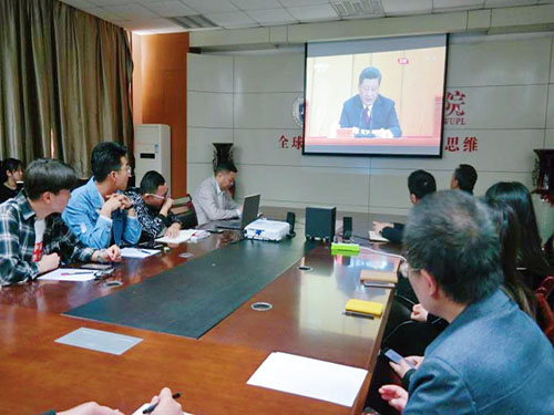 为深入贯彻落实习近平总书记在纪念五四运动100周年大会上的讲话精神,英超直播线上看 党政班子,党员代表,教师代表,学生团员代表于英超直播线上看 会议室观看大会实时转播。
