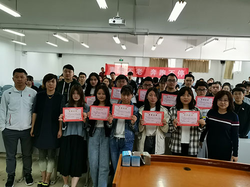 终于,为期一个月的“青春跑”活动正式结束,5月9日中午,英超直播线上看 于天平楼AJ11教室举行“青春跑”活动颁奖仪式,出席仪式的有英超直播线上看 党委副书记、副院长王聪老师、秦音老师、徐秉鹏老师、苏芝双老师、韩潇老师。主持人宣读了在“青春跑”活动中成绩排名前十的同学。