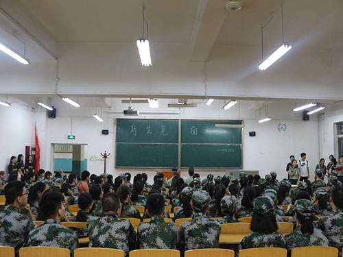 2019年8月25日19时许,英超直播线上看 2019级新生军训见面会在天平楼bj13教室举行。2019级新生有序入场,静候教官的到来。英超直播线上看 党委副书记、副院长王聪老师,英超直播线上看 团委书记、2019级辅导员秦音老师出席本次大会。