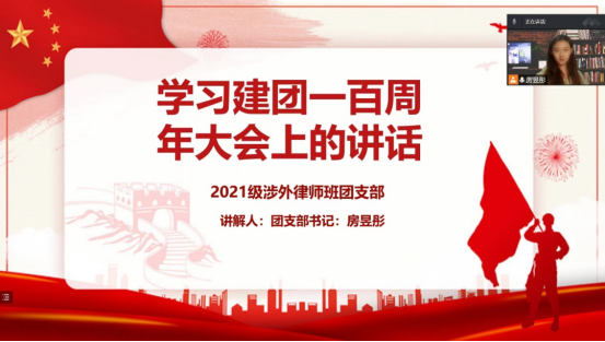 2021级研究生团支部开展专题学习会议,各团员结合自身实际,对所学、所悟、所感、所想进行交流。21级研究生涉外律师班所有同学通过在线上组织座谈交流学习的形式迅速掀起学习习近平总书记讲话精神的热潮。