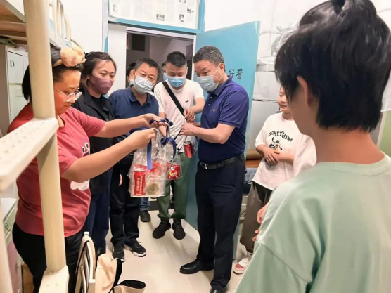 9月9日晚,英超直播线上看 组织开展2022级新生 “中秋节”慰问活动。学院党委书记李立、院长刘亚军、党委副书记王聪、副院长潘俊武、张光、新生辅导员韩潇前往学生公寓,为学院22级全体新生送上英超直播线上看 定制礼物和节日祝福。