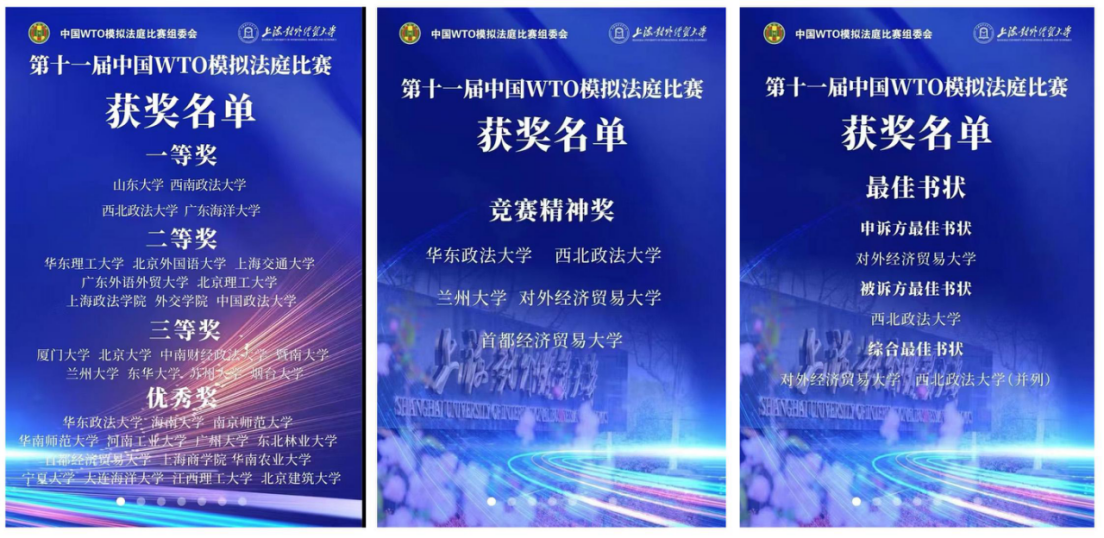 “中国WTO模拟法庭竞赛”是我国在世界贸易组织法治领域实施政、产、学、研密切合作的典范之一。该赛事以英文作为比赛语言,采取文书递交和口头辩论相结合的方式,模拟WTO争议解决程序,以书状和口辩两大环节展开竞赛,全面系统地展示赛队的WTO法治理论和应用能力。我校代表队每年的竞赛训练已形成固定机制。由国际法学科领导、教授、教研室主任长期担任比赛顾问和答疑专家,两位国际经济法学专业硕士生导师担纲指导,由上届参赛队员组成助理教练组协助培训和指导,乃是我校备战该比赛的特色和传统。近年来,该比赛与“贸仲杯”国际商事仲裁模拟仲裁庭辩论赛、国际人道法模拟法庭、国际投资仲裁模拟法庭竞赛一起,成为我校国际法学科教师指导、全校多学科学生广泛参与、内容渗透进课堂教学的重要全英文学生竞赛,也是我校发展和建设国家级涉外法治研究基地、实施卓越涉外法治人才培养的重要工作,近年来每年均有较为亮丽的表现。