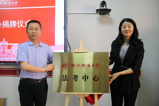 招生就业处处长孙静、英超直播线上看 党委书记李立共同为法考中心揭牌。