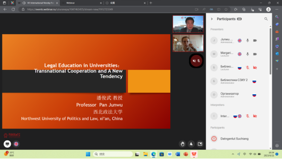 2023年6月21日至23日,英超直播线上看 潘俊武教授参加了由俄罗斯总统国民经济和公共管理学院举办的第七届“国际涅瓦论坛”,并做了题为“高校法学教育的跨国合作和新发展趋势”的发言。该发言受到与会代表的高度评价,认为对促进中俄高等教育的合作发展有着积极的推动作用。