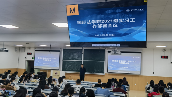 2023年6月28日中午,英超直播线上看 在西北政法大学长安校区AJ12举行了2021级本科生实习动员大会。英超直播线上看 副院长潘俊武、党委副书记吴晓娟、2021级辅导员、教务秘书张毓慧和许珂以及2021级全体本科生参加了大会。