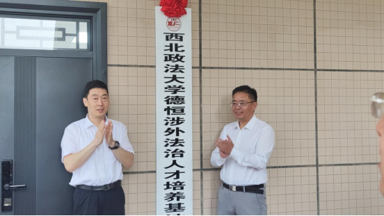 孙昊亮和闫玉新为西北政法大学德恒涉外法治人才培养基地揭牌。