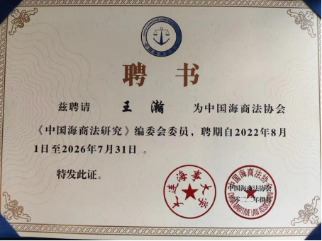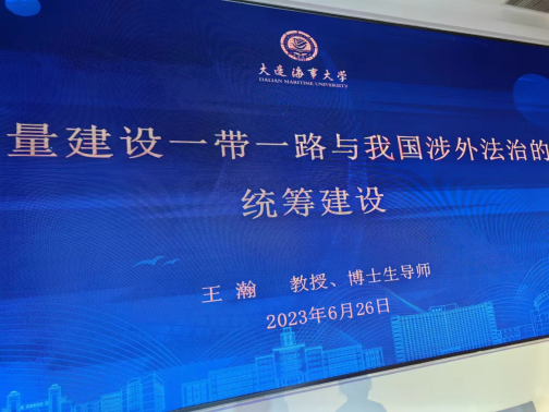 2023年6月26日,我校丝绸之路区域合作与发展法律研究院院长王瀚教授应邀在大连海事大学图书馆国际报告厅做《高质量建设一带一路与我国涉外法治的统筹建设》专题报告,大连海事大学法学院王淑敏教授主持报告会,两百余位硕、博士研究生及部分教师参加报告会。大连海事大学法学院副院长、《中国海商法研究》常务副主编韩立新教授向王瀚教授颁发了编委会委员聘书。