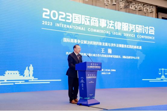 为助力西安“一带一路”国际商事法律服务示范区建设,营造市场化、国际化、法治化营商环境,11月9日上午,由中国国际经济贸易仲裁委员会(简称“贸仲”)主办的2023国际商事法律服务研讨会在西安成功举办。西安市政协委员副主席张华俊,贸仲委副主任兼秘书长王承杰,西安市中级人民法院党组书记、院长赵雷出席开幕式并致辞。来自西安市政府机构、司法机构、科研院校、法律服务机构、商协会及企业等代表共170人现场参会。
