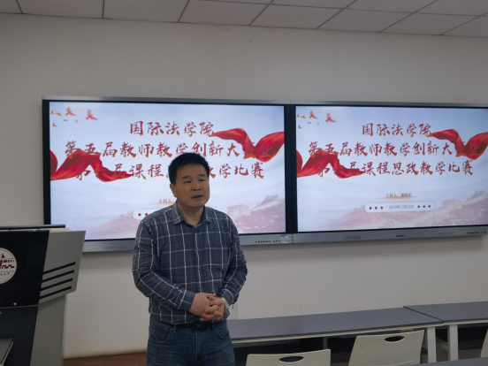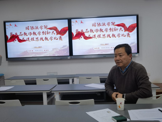 为推进以“学科德育”为核心理念的课程改革,落实我校《第五届教师教学创新大赛暨第六届课程思政教学比赛》有关要求,英超直播线上看 于12月15日下午在我校长安校区举行了“课程思政”教学竞赛活动。我校图书馆馆长张宏斌、英超直播线上看 党委书记李立、英超直播线上看 副院长潘俊武、张光,马克思主义学院教授刘亚玲、国际经济法教研室主任马海涛、国际私法教研室主任赵恒宇、国际公法教研室教授刘萍担任了本次比赛的评审。活动由潘俊武教授主持,师怡、王兆平、蒋围、张丝路、李洁、贺小丽、张光耀参加了本次比赛。
