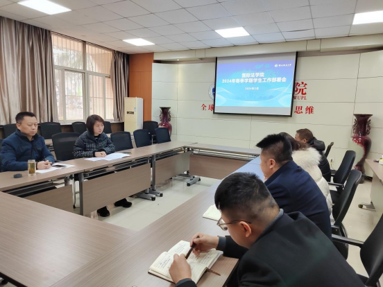 会上,吴晓娟传达了学校春季学期学生工作会议精神及相关要求,并带领学工干部学习了《关于进一步强化学生纪律教育暨深化校风学风建设工作实施方案》有关精神,她结合学院学生工作实际,明确新学期各项工作任务,重点强调强化学生纪律教育,优化校风学风建设工作。李立书记围绕学院2024年学生工作主线和学校本科教学审核评估工作,对各项学生工作要点提出了更高要求。他强调,在学校各项工作进入攻坚阶段的关键时期,全体学工干部要提高政治站位,强化责任担当,高度重视学生纪律教育和优良校风学风建设工作的重要性、紧迫性,狠抓工作落实,全面提升育人质量。