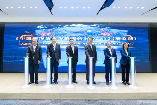 揭牌仪式后,大连海事大学在深圳前海发布重要智库成果——《中国海洋法治发展报告(2023)》英文版。该报告系国内首部正式出版的纯英文海洋法治发展蓝皮书,旨在从学术角度研究和阐释中国特色海洋法治理念、主张、实践。我校王瀚教授和大连海事大学校长单红军、中国海洋法学会会长、大连海事大学智库首席专家髙之国、深圳海事局局长王建华、香港国际海事与航运中心董事、香港海事仲裁协会中国委员会主席李连君、深圳国际仲裁院秘书长赵枫共同启动发布式。