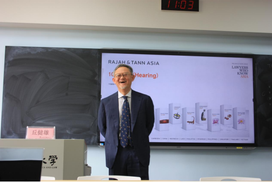 丘健雄律师作为新加坡立杰律师事务所国际仲裁、工程及基建业务的管理合伙人,结合自身丰富的从业经验,着重探讨了国际仲裁的关键环节。他详细讲解了庭审的现场布置,强调了庭前会议环节在仲裁程序中的重要性,指导如何准备和应对庭前会议中可能出现的问题和挑战。丘律师解析了事实证人和专家证人在庭审中的作用及其具体盘问程序,提供了宝贵的实务经验和技巧。丘律师还针对不同仲裁机构的裁决期限问题进行了剖析,阐述了各个机构的特点和裁决流程,提供了选择仲裁机构的参考依据。此外,他还分享了和解程序在国际仲裁中的广泛应用,并就如何有效进行和解谈判与师生们进行了深入交流与探讨。