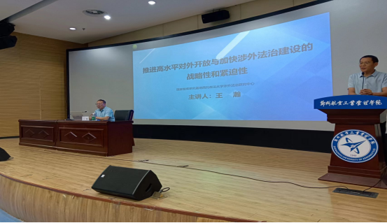 5月15日,我校国际法学科带头人、国家智库研究基地涉外法治研究中心执行主任王瀚教授应邀访问郑州航空工业管理学院文法学院做了题为“推进高水平对外开放与加快涉外法治建设的战略性和紧迫性”的学术讲座。
