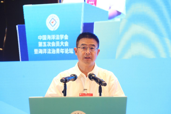 中国法学会会长王晨出席会议并发表讲话。自然资源部党组成员、副部长,国家海洋局局长孙书贤,中国法学会党组成员、副会长王其江,浙江省委常委、政法委书记,省法学会会长王成国,浙江省人大常委会原党组书记、副主任梁黎明,浙江省杭州市人大常委会党组书记、主任李火林出席会议。