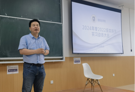在王艺潜主持下,潘俊武首先强调了实习的必要性和重要性,介绍了合作实习基地的具体情况,鼓励同学们积极参加集中实习,要求同学们以饱满的精神状态参加即将开始的实习工作,充分利用实习机会,将所学的理论知识运用到实际工作中。同时,按照涉外法律人才协同培养方案要求,涉外律师、国际仲裁法律硕士在新疆霍尔果斯口岸自贸片区司法局、西仲、贸仲丝路中心等单位从事涉外法律服务实习,部分学生参加境外马来西亚梁潘黄律师事务所实习。随后,张毓慧对本年度实习工作做了说明,详细介绍了2024年度学生实习的时间安排、实习管理、实习要求、实习成绩评定及记录等。最后,吴晓娟副书记强调了实习纪律、实习检查、成果验收,要求同学们认真做好实习日志,同时提醒同学们注意人身和财产的安全,遵守实习单位的各项规定,定期向辅导员和指导老师汇报实习期间各项情况。
