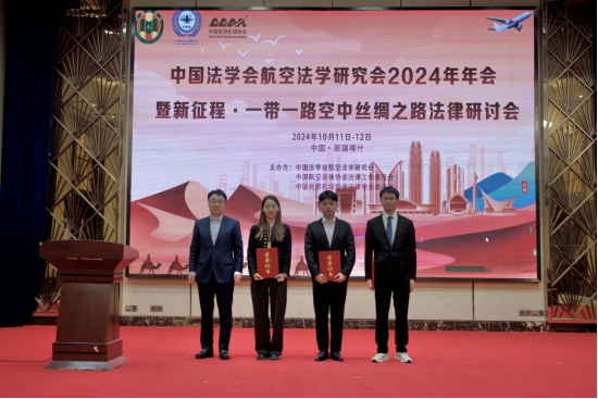 2024年10月11-12日,中国法学会航空法学研究会2024年年会暨新征程·一带一路空中丝绸之路法律研讨会在新疆喀什成功举办,我校师生两项成果在研讨会主题征文中获奖。
