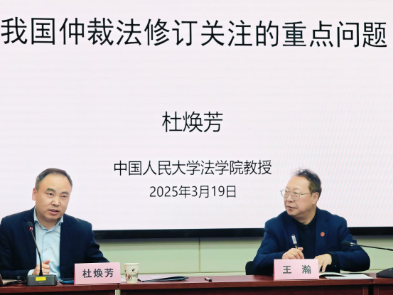 2025年3月19日 “西北政法大学涉外法治研究中心专题报告会”在西北政法大学人权研究中心会议室顺利举办,会议主题是“仲裁法修订关注的重点问题”。会议由中国人民大学法学院党委书记兼副院长杜焕芳教授主讲,西北政法大学涉外法治研究中心执行主任王瀚教授主持,中国国际经济贸易仲裁委员会丝绸之路仲裁中心蒋红梅副秘书长、西安仲裁委员会徐文新副主任、西北政法大学国际私法研究所所长孙尚鸿教授、西北政法大学航空法协同创新中心副主任周亚光副教授担任与谈人,中国国际经济贸易仲裁委员会丝绸之路仲裁中心、陕西省律师协会代表,以及英超直播线上看 张超汉教授、刘静博士、贾乔、石文慧等硕、博研究生参加会议。