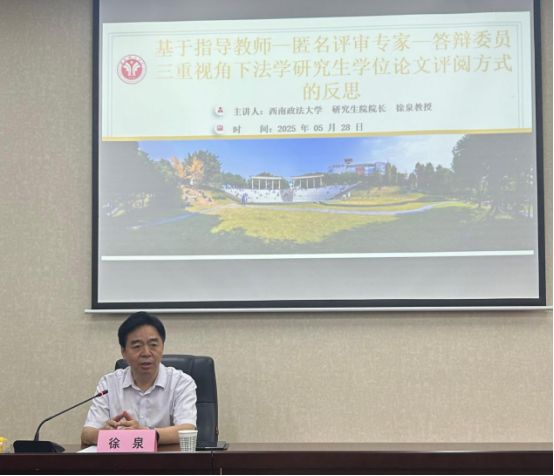 5月28日,西北政法大学涉外法治研究中心学术报告会在我校雁塔校区三教102会议室举行,武汉大学国际法治研究院博士研究生导师、教育部长江学者杨泽伟教授和西南政法大学英超直播线上看 博士研究生导师徐泉教授分别做专题讲座,西北政法大学涉外法治研究中心执行主任、博士生导师王瀚教授担任主持人,英超直播线上看 张超汉教授、吕江教授、王泽林教授、张光耀博士、王阳博士及硕、博士研究生参与会议。