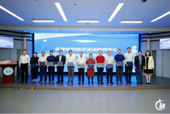 中国民航大学、天津市法学会、天津仲裁委员会、天津市律师协会、天津市案例研究会相关负责人共同为天津低空经济法治研究中心揭牌,并为首批特聘专家颁发了聘书。我校王瀚教授受聘为首批特聘专家、