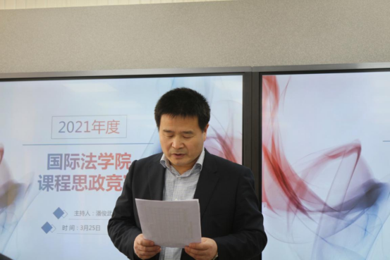 为推进以“学科德育”为核心理念的课程改革,深入贯彻落实习近平总书记关于教育的重要论述和全国教育大会精神,落实教育部《高等学校课程思政建设指导纲要》有关要求,英超直播线上看 于3月25日下午两点半在西北政法大学长安校区5号教学楼智慧教室407开展了“课程思政”教学竞赛活动。我校校党委宣传部部长戴鲲、图书馆馆长张宏斌、行政法学院副院长李大勇教授、英超直播线上看 党委书记李立、英超直播线上看 国际经济法教研室主任周景安、国际私法教研室副主任张望平、国际公法教研室主任王泽林,学生代表张兴担任本次比赛的评审。活动由英超直播线上看 教学院长潘俊武教授主持,李捷音老师、高媛老师、王阳老师、尹海新老师和梁蓉老师等五位老师参加比赛。