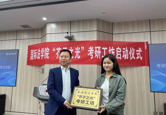 仪式上,学院党委副书记、副院长王聪介绍了考研工坊项目实施方案。副院长潘俊武宣读了“芥子之光”考研工坊组织机构人员名单。指导教师代表王兆平和学生代表黄盼分别发言。学院党委书记李立为“芥子之光”考研工坊授牌。