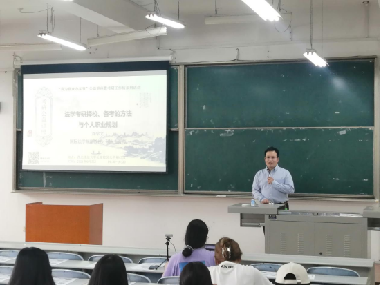 2021年6月3日,英超直播线上看 在我校南校区天平楼AJ11阶梯教室举办“我为群众办实事”公益讲座暨考研工作坊系列活动。英超直播线上看 副教授、硕士生导师刘学文老师为现场英超直播线上看 法学专业80余名同学做了题为《法学考研择校、备考的方法与个人职业规划》的公益讲座。该活动还在线同步进行,来自南阳师范学院等数十名外校学生也共同聆听了讲座。