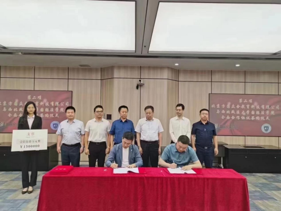 李玉朝副校长为北京方圆众合教育科技有限公司和北京安理(西安)律师事务所授予“西北政法大学实践教学基地”牌匾。刘亚军和北京方圆众和教育科技有限公司CEO李曰龙、万商天勤律师事务所主任卫永鹏分别签署合作协议并接受捐赠。刘亚军、潘俊武、张光为21名校友颁发“英超直播线上看 就业创业导师”、“英超直播线上看 实务导师”聘书。