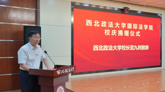 范九利代表西北政法大学全体师生向来宾和校友致以诚挚的问候和衷心的感谢。他指出,习近平法治思想统筹推进国内法治和涉外法治,加快涉外法治工作的战略布局。西北政法大学是是全国首批卓越涉外法治人才培养单位和涉外律师法律硕士培养单位,是国家涉外法治研究基地。借助此次校庆活动将获得更多社会力量和校友资源的支持,进一步创新涉外人才培养模式,健全完善合作机制,促进司法实践与教学科研紧密结合,共同培养造就高质量涉外法治研究和涉外司法人才。他呼吁全体师生与校友共同树立远大理想、主动担当、积极而为,助力学校教育事业取得新发展、迈上新台阶。