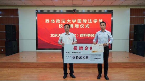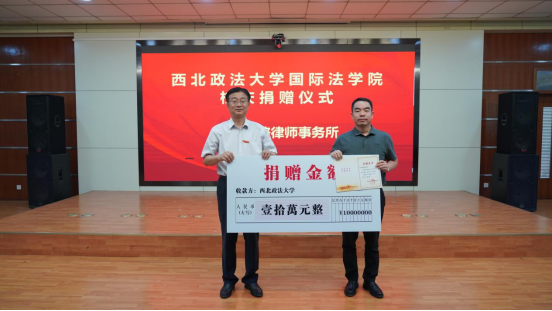副校长张荣刚与北京德恒(银川)律师事务所高级合伙人王磊签署捐赠协议并颁发捐赠证书。