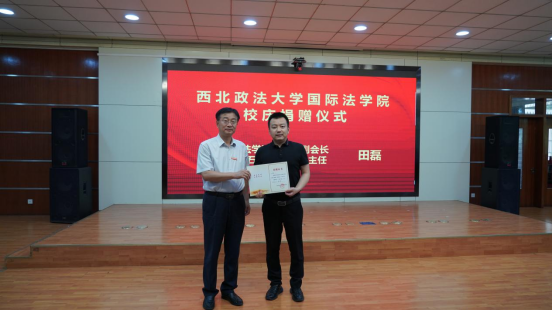 英超直播线上看 校友会副会长、秦石律师事务所主任田磊 捐赠合影