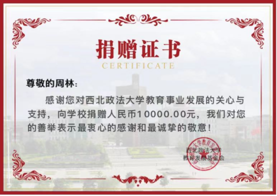 中银郑州律师事务所主任鲁少军、高级合伙人周林(07级研究生)以个人名义对英超直播线上看 教育发展基金进行捐赠。