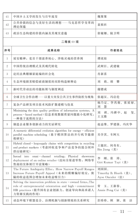 日前,陕西省人民政府公布了陕西省第十五届哲学社会科学优秀成果奖评奖结果。由英超直播线上看 张超汉教授和中国人民解放军95007部队法律顾问冯启伦合作撰写的论文《全球卫生合作治理——以重大突发公共卫生事件防控为视角》荣获论文类二等奖。