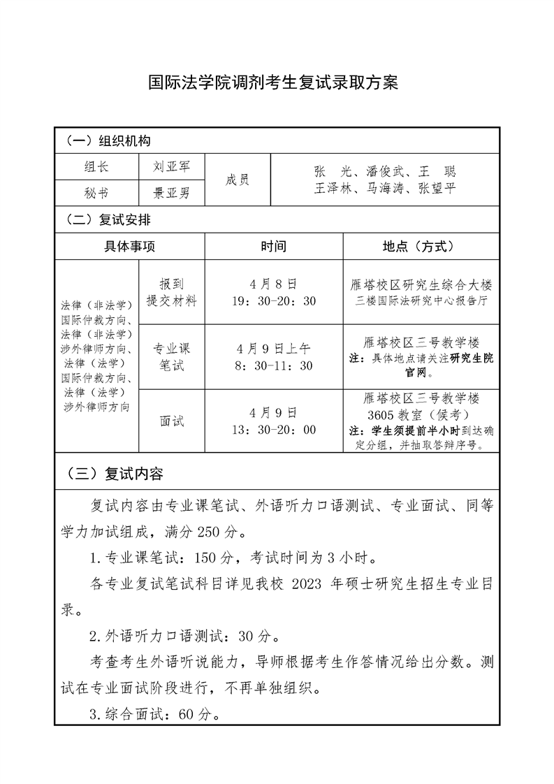 西北政法大学2023年法律硕士(国际仲裁、涉外律师)调剂拟录取名单公示