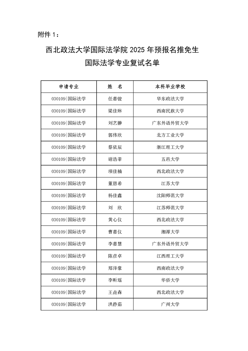 2024级‘涉外法治人才协同培养创新基地班’学生遴选公示