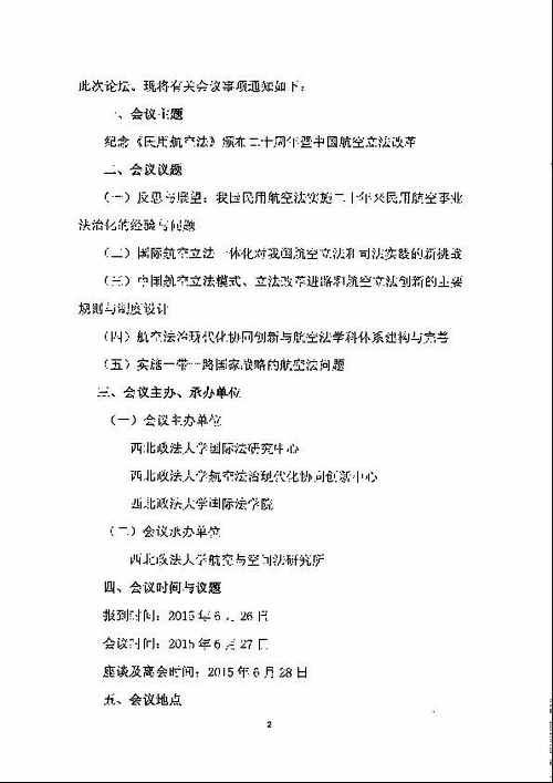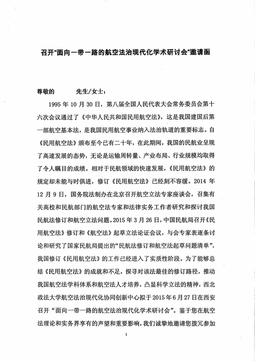 关于召开纪念《中华人民共和国民用航空法》颁布二十周年法治论坛的邀请函