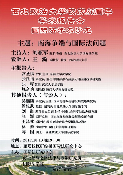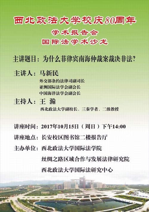 西北政法大学校庆80周年学术报告会国际法学术沙龙预告(二)