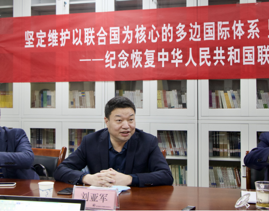 2021年10月25日下午,“坚定维护以联合国为核心的多边国际体系,坚定维护以国际法为基础的多边国际秩序——纪念恢复中华人民共和国联合国合法席位五十周年”座谈会在丝绸之路区域合作与发展法律研究院会议中心举办。本次座谈会由英超直播线上看 、西北政法大学国际法研究中心、丝绸之路区域合作与发展法律研究院主办,中国国际私法学会副会长、陕西省三秦学者特聘教授、丝绸之路区域合作与发展法律研究院院长、博士生导师王瀚教授担任评议人,英超直播线上看 院长、博士生导师刘亚军教授担任主持人,英超直播线上看 潘俊武教授、王秀梅教授、吕江教授、刘学文副教授、张望平副教授、宋瑞琛博士、刘冰博士、陈婉姝博士进行与谈。