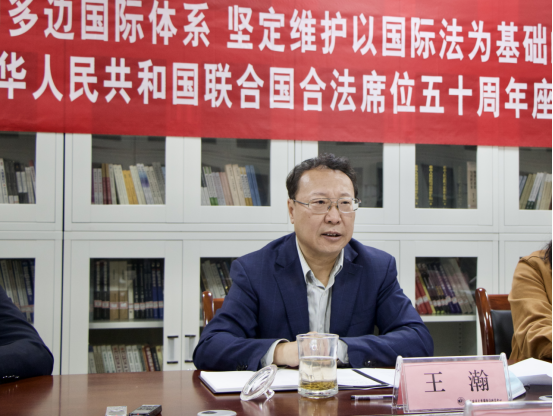 王瀚教授从五个角度对恢复中华人民共和国在联合国合法席位进行阐述。他认为,恢复中华人民共和国在联合国合法席位为中国走向世界舞台中央奠定了国际政治基础、法律基础和国际组织基础;恢复中华人民共和国在联合国合法席位改变了联合国原有的成员格局,增强了发展中国家的力量;中国始终坚定维护以联合国为核心的国际体系并以国际法为基础;中国是联合国体系内作出贡献最大的成员国;“一带一路”倡议和构建人类命运共同体理念,为以联合国为核心的多边体系发展注入动力。王瀚教授提出,新中国成立后与国际体系密切联系的事件主要包括:恢复中华人民共和国在联合国的合法席位、中国加入世界贸易组织、“一带一路”倡议提出和中国签署RCEP协定。