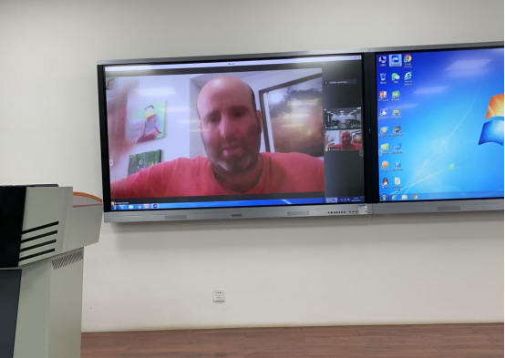 2021年10月19日晚19:30,纽约大学Adam Dubin 教授与英超直播线上看 2019级与2020级涉外班同学在长安校区五号教学楼202教室通过腾讯会议进行了线上授课。徐建平老师担任本次讲座主持人及翻译。