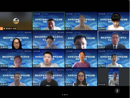 此次答辩过程包括论文陈述和回答提问两个环节,答辩学生从选题背景、论文结构、写作方法、创新与不足几个方面进行陈述,答辩委员随后进行点评和提问,同时就论文中存在的主要问题提出了修改意见和建议。整个答辩过程组织有序、程序规范、师生交流融洽,取得了较好的效果。此次答辩是一次线上线下相结合方式的新的尝试,经过全体老师和学生的努力,此次答辩工作圆满结束,全体学生通过答辩。